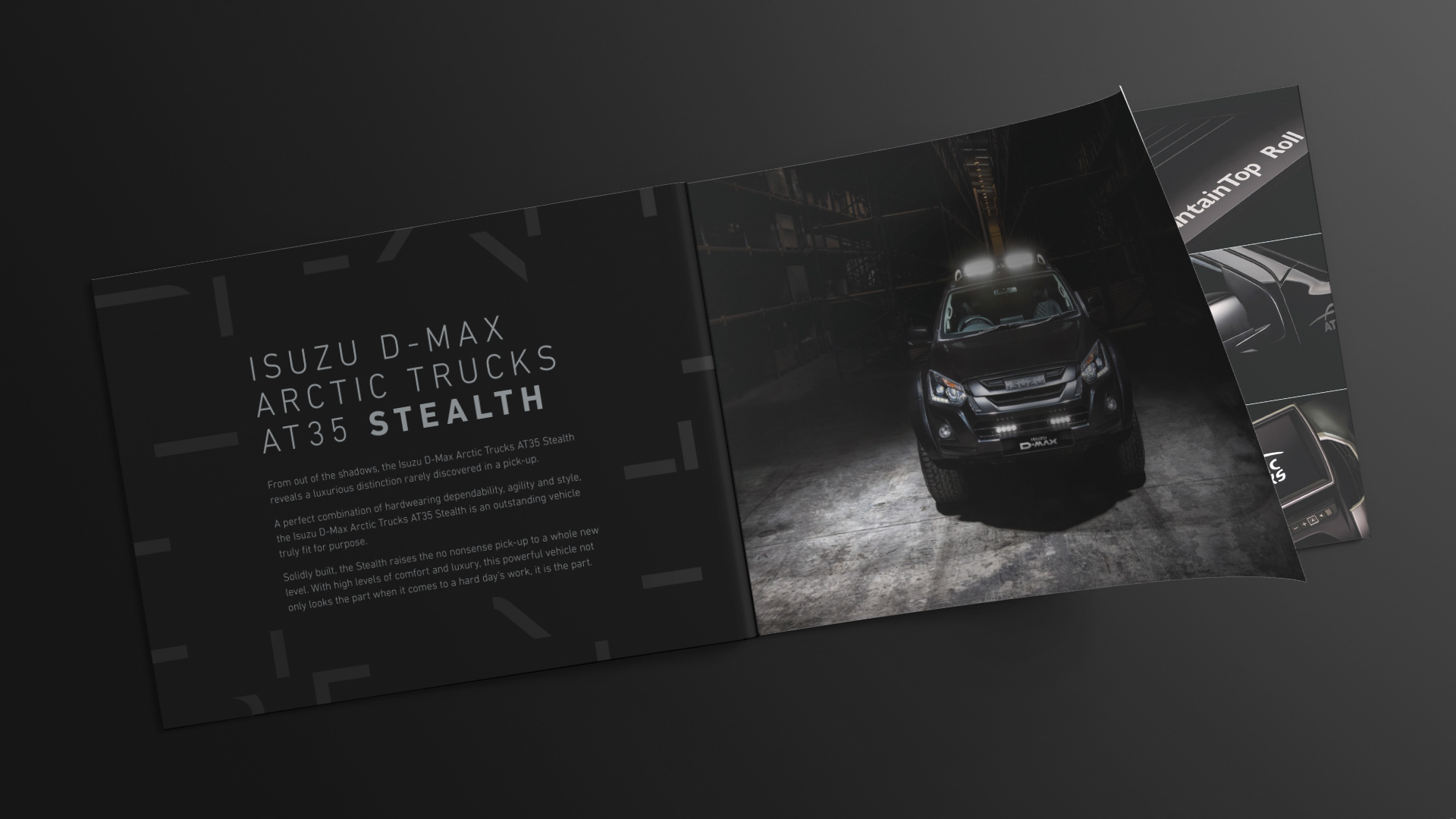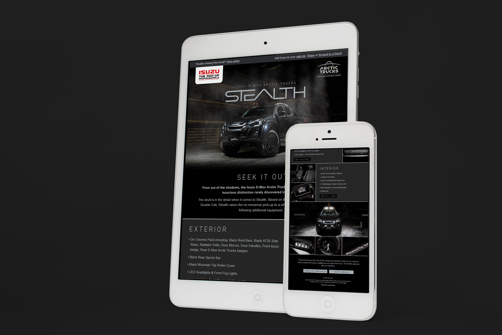 Launch materials for the special edition Isuzu D-Max Stealth vehicle, including press advertising, email design, brochure and image retouching.