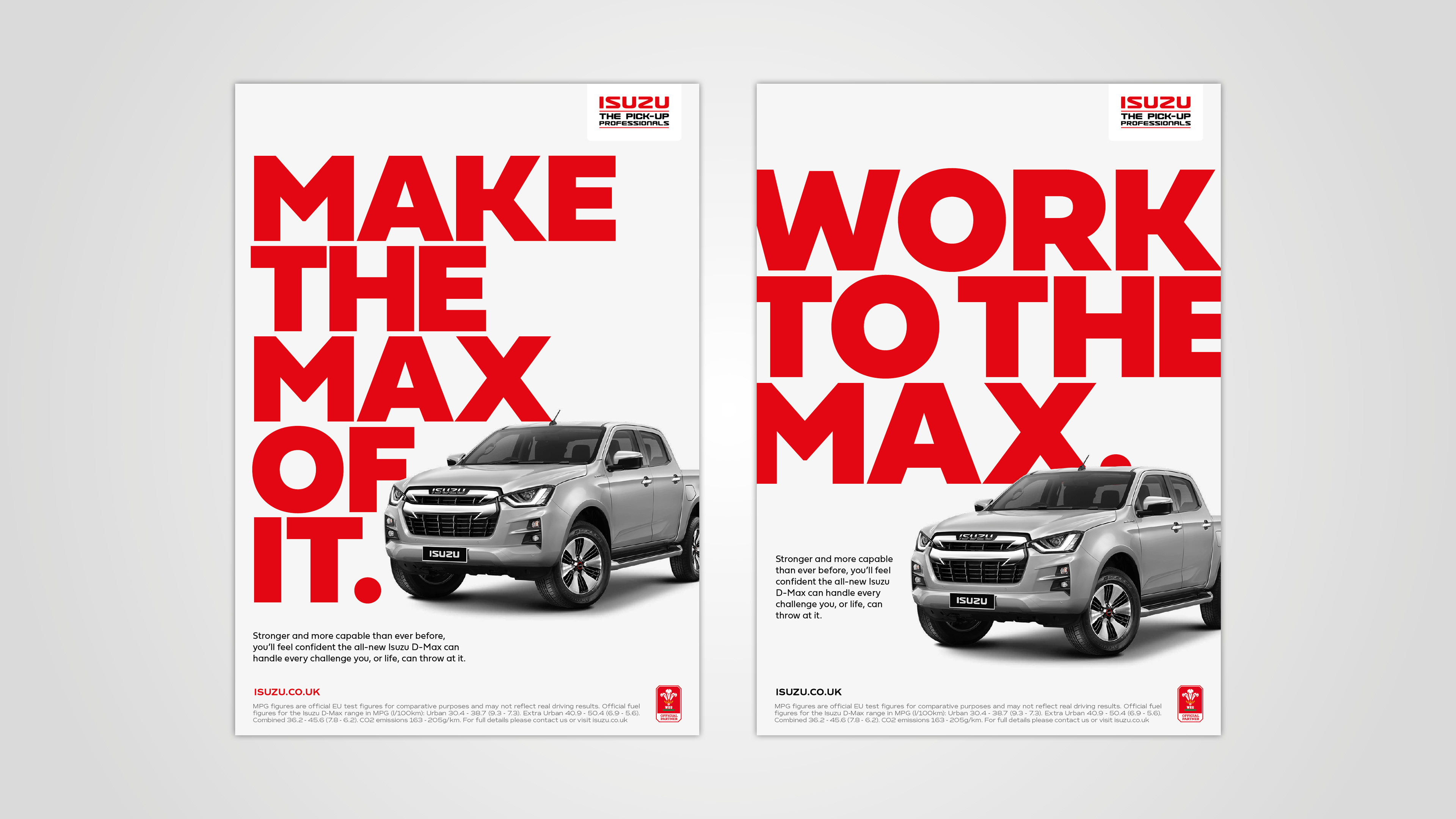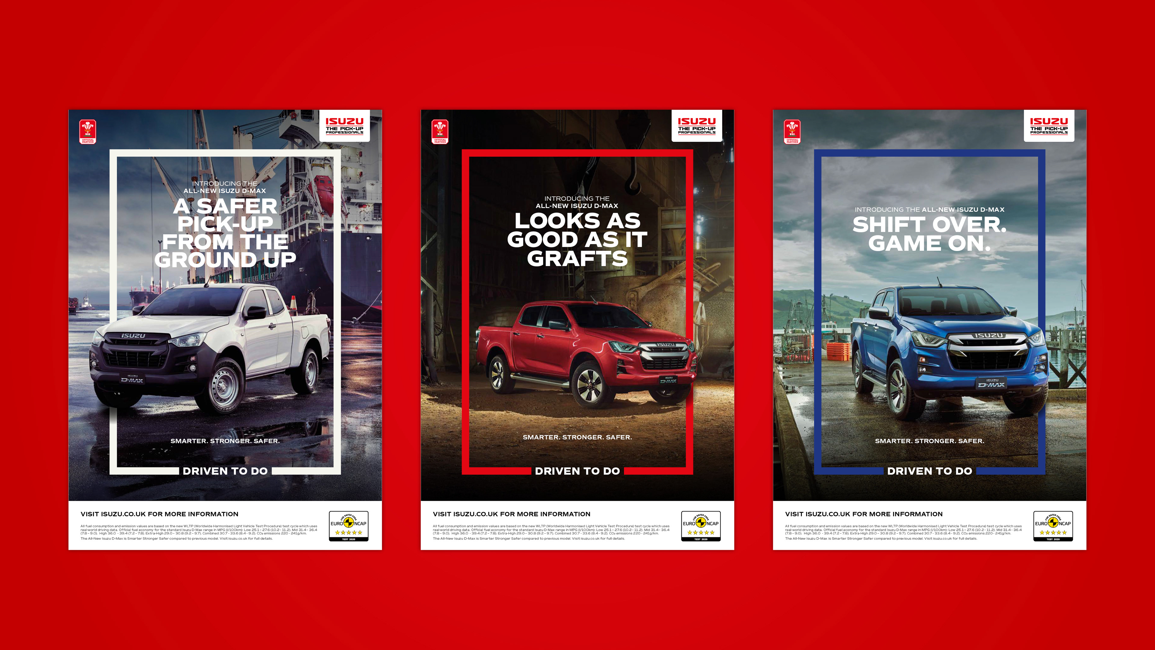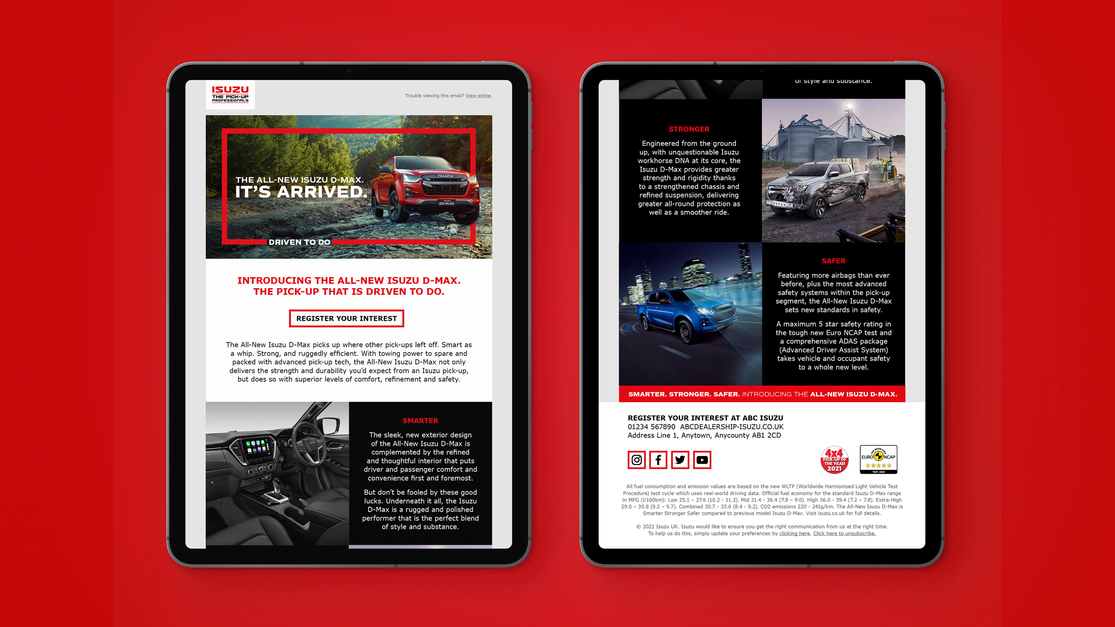 Campaign deliverables for the 'DRIVEN TO DO' new 2021 model Isuzu D-Max, including a brand typeface refresh, new model logos and email template design.