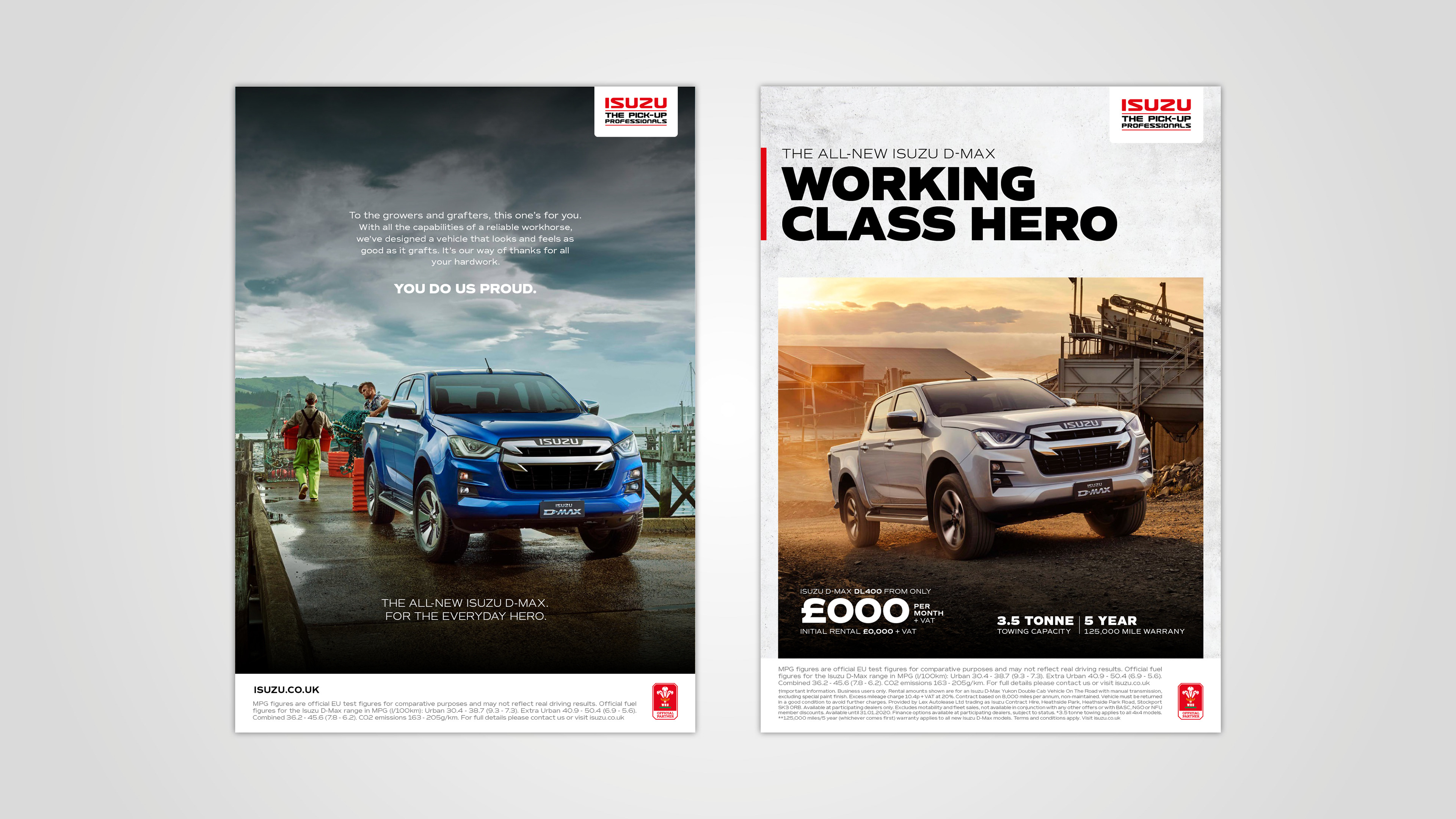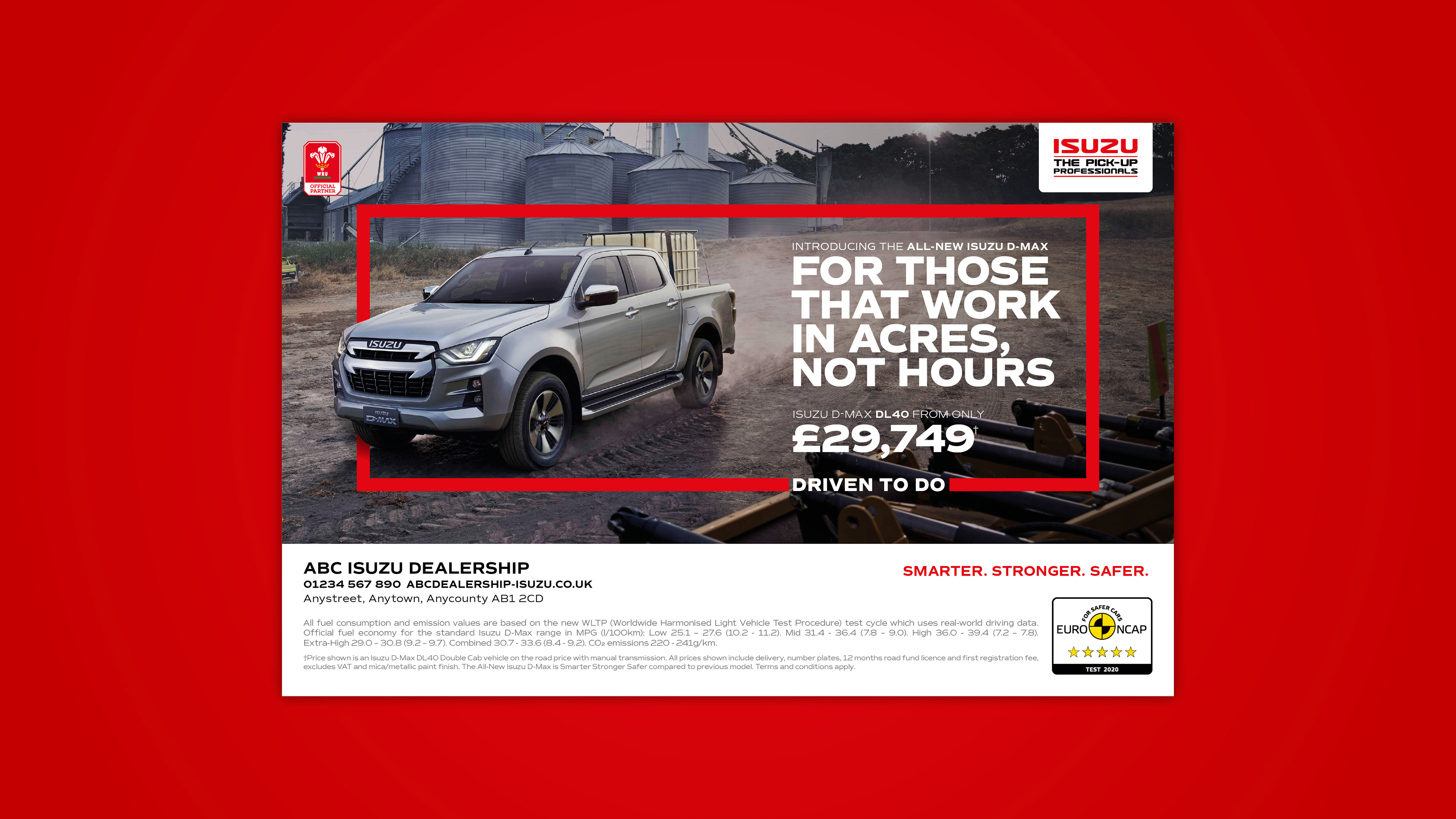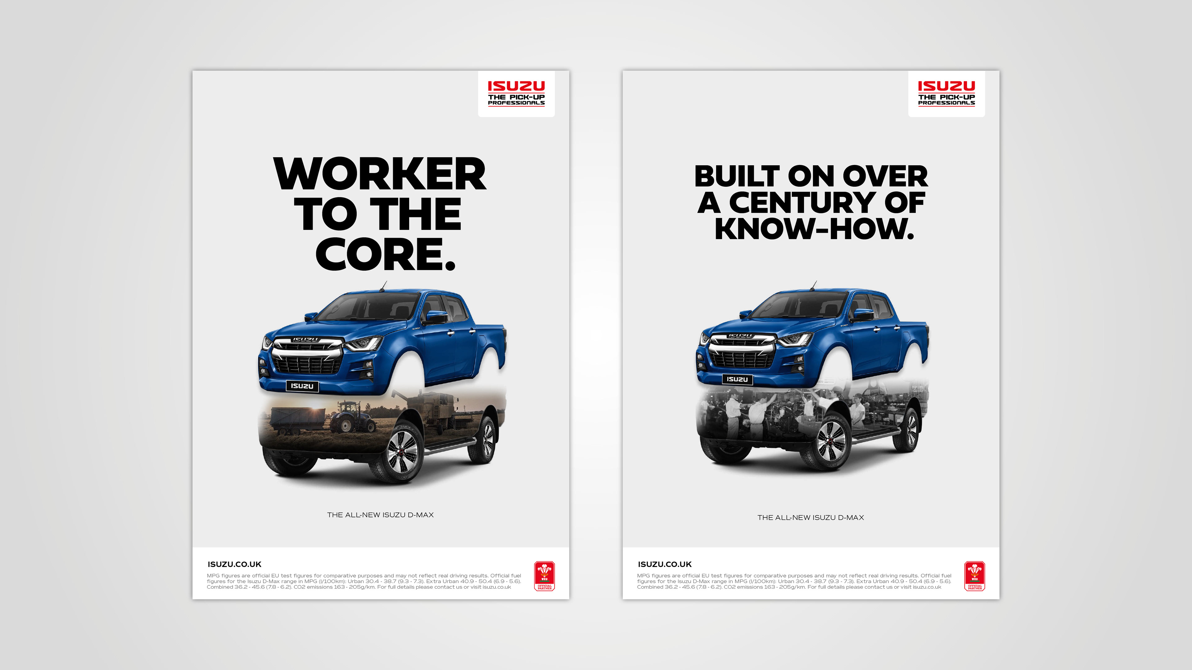 Campaign deliverables for the 'DRIVEN TO DO' new 2021 model Isuzu D-Max, including a brand typeface refresh, new model logos and email template design.